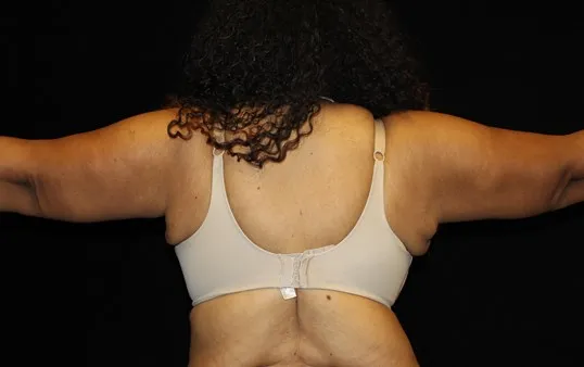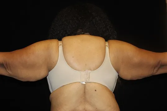 This patient has larger arm with a moderate amount of residual fat despite massive weight loss. She still has a great result despite her larger arms. There are patients that require liposuction of the arms before the arm lift to deflate the arms, giving them a better result from the arm lift surgery.