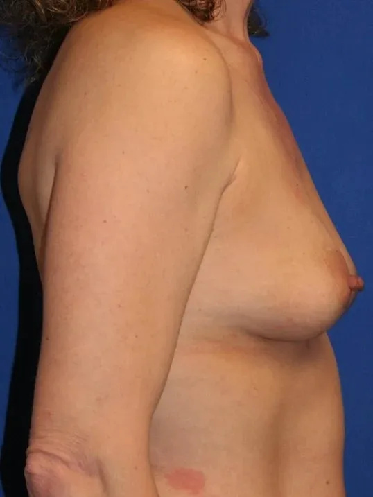This patient is a mid-aged woman who has had children and wished to given her a full more youthful appearance. She has a mild amount of sagging that is wanted lifted. Her right breast is slightly smaller then the left and therefore she had 375cc placed on the right and 350cc on the left.